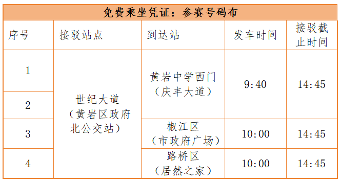 注:实际发车时刻表会根据预约情况作调整,具体班次以赛前发布的信息为准,请实时关注台州马拉松公众号发布的相关信息。